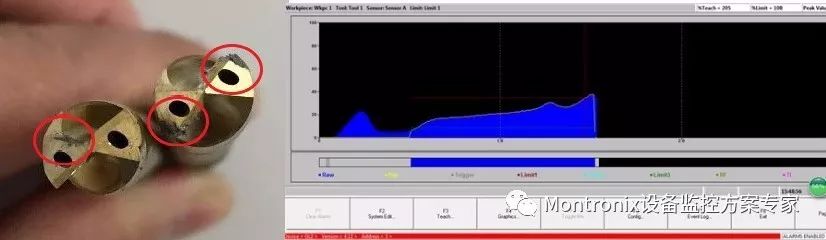 与普通钻孔的过程不一样的是,深孔钻往往要求的钻孔质量要更严格,对于监控的灵敏度要求更高。因为如果深孔钻的刀万一断在工件里面,不光是损失了刀具,也损失了工件。而且,深孔内表面的加工质量也无法用肉眼观测到。因此,Montronix提供了“声波传感器+功率传感器”作为双重保险,来监控加工过程出现的极其细微的异常。